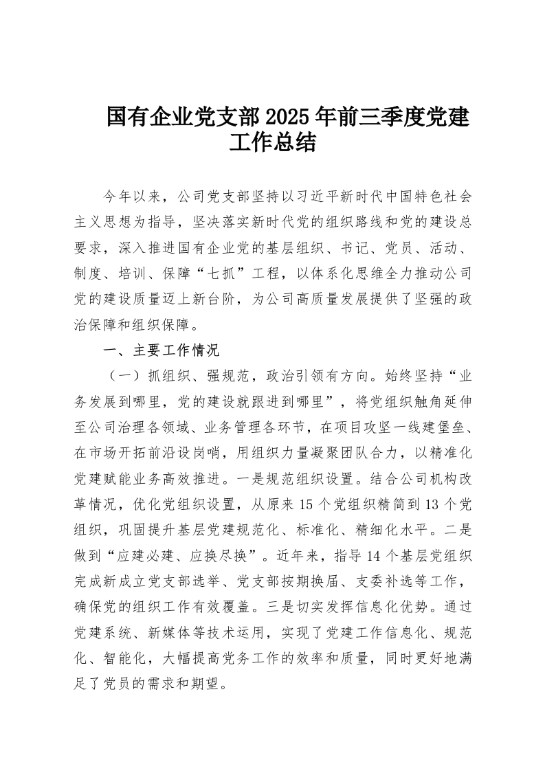 首页精选范文国有企业党支部2025年前三季度党建工作总结