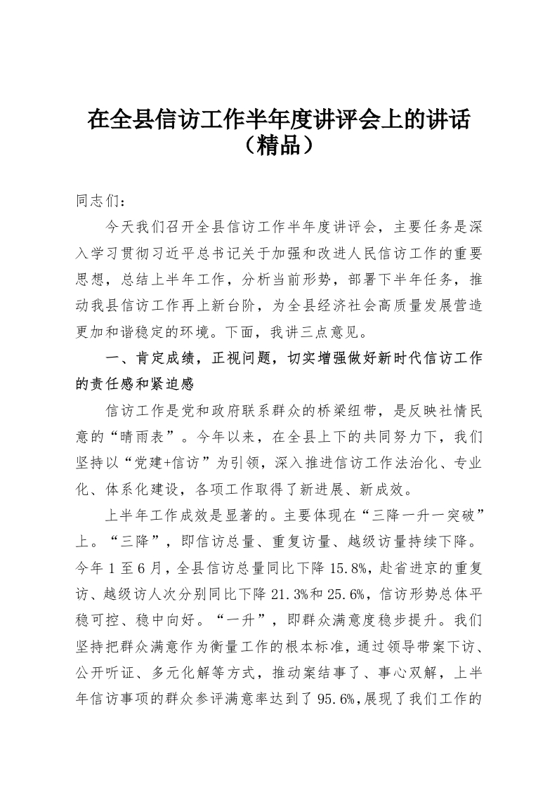 首页精选范文在全县信访工作半年度讲评会上的讲话(精品)