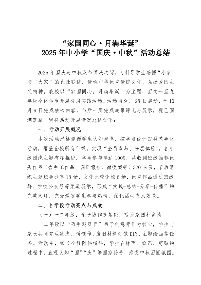 首页精选范文“家国同心·月满华诞”2025年中小学“国庆·中秋”活动总结