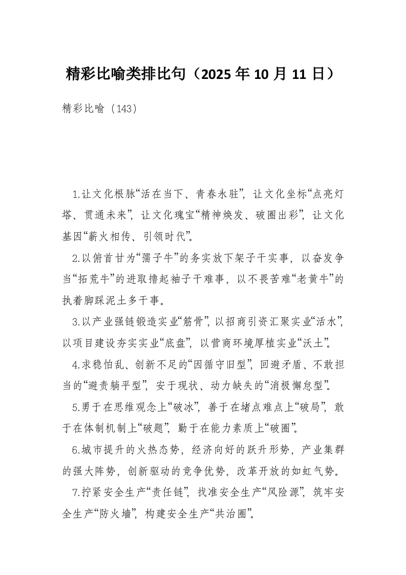 首页每日金句精彩比喻类排比句(2025年10月11日)