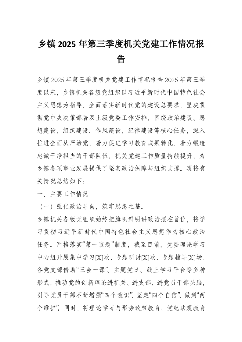 首页学习提升乡镇2025年第三季度机关党建工作情况报告