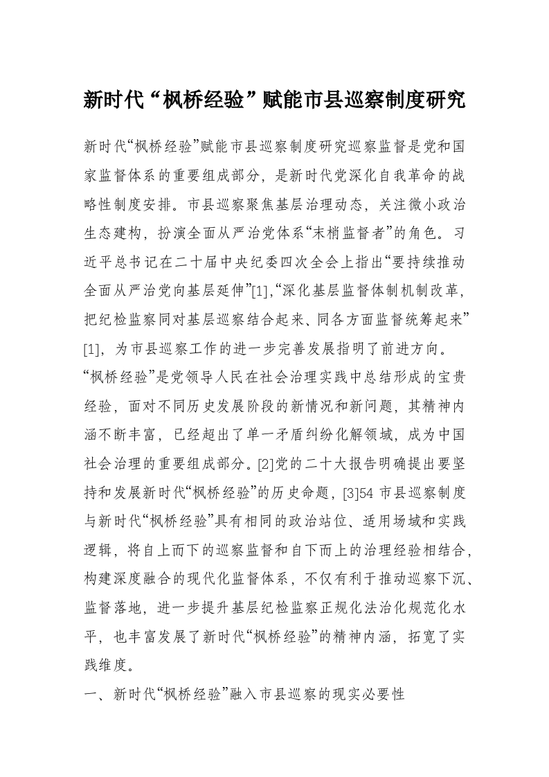 首页学习提升新时代“枫桥经验”赋能市县巡察制度研究