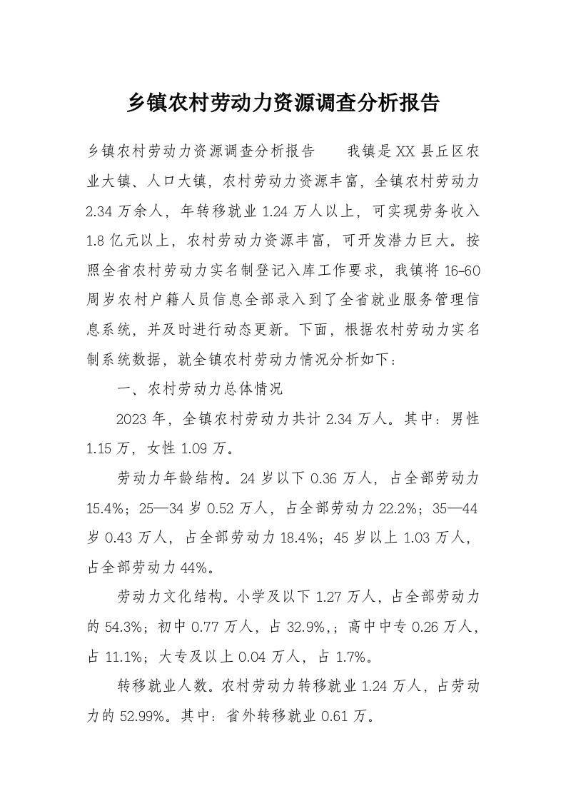 首页学习提升乡镇农村劳动力资源调查分析报告
