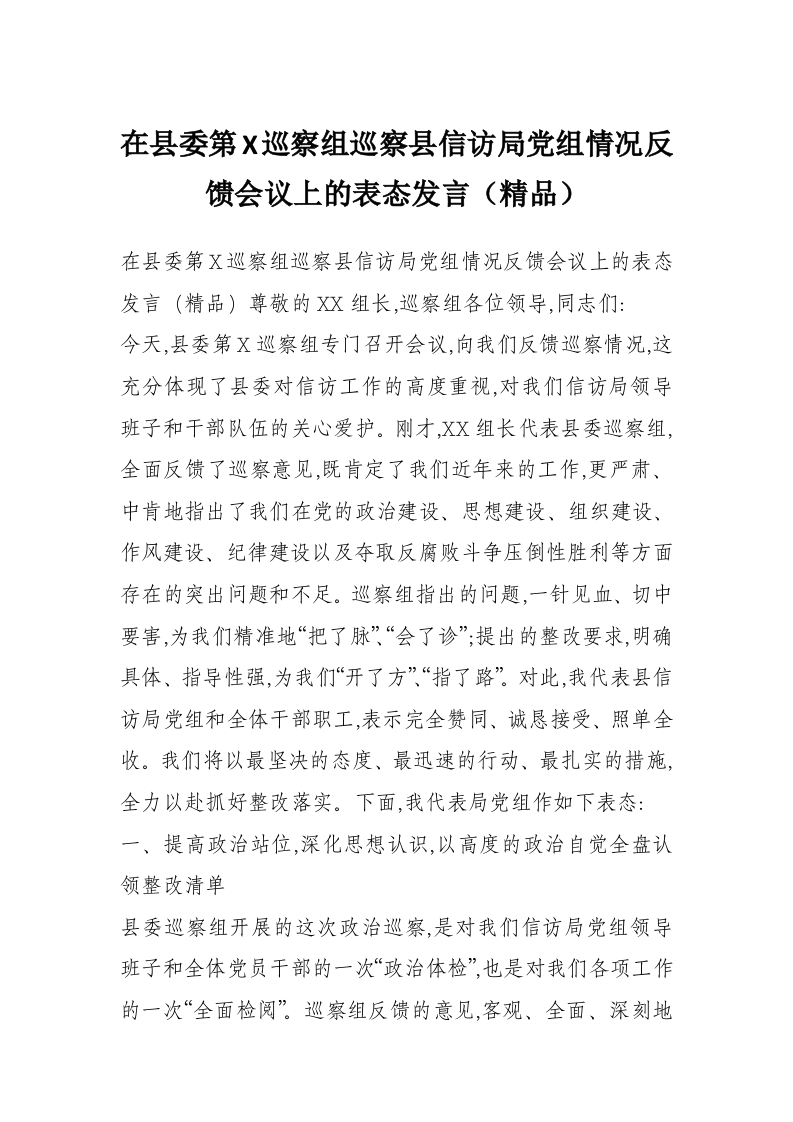 在县委第X巡察组巡察县信访局党组情况反馈会议上的表态发言(精品)