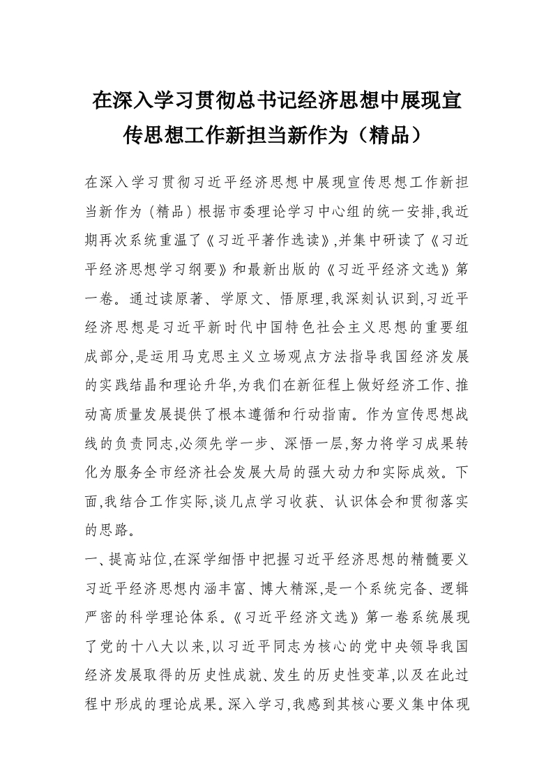在深入学习贯彻总书记经济思想中展现宣传思想工作新担当新作为(精品)
