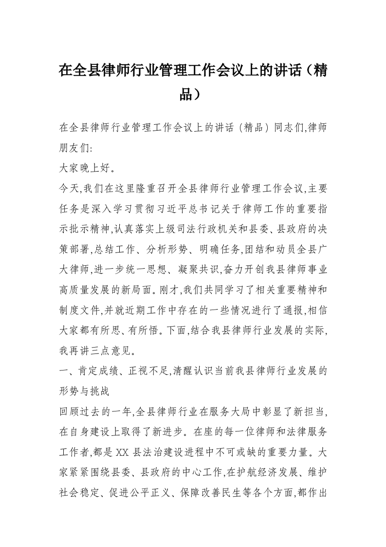 首页材料汇编在全县律师行业管理工作会议上的讲话(精品)