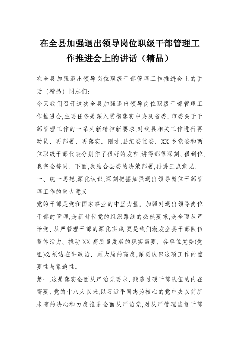在全县加强退出领导岗位职级干部管理工作推进会上的讲话(精品)