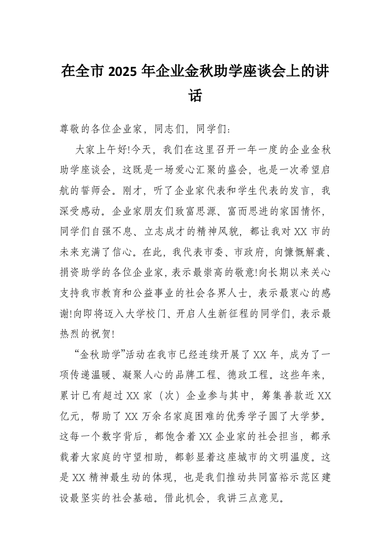 首页材料汇编在全市2025年企业金秋助学座谈会上的讲话