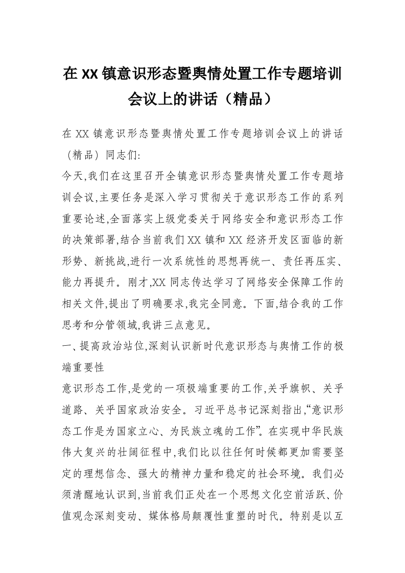 在XX镇意识形态暨舆情处置工作专题培训会议上的讲话(精品)