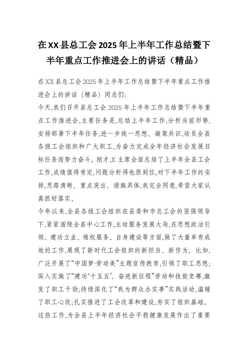 在XX县总工会2025年上半年工作总结暨下半年重点工作推进会上的讲话(精品)