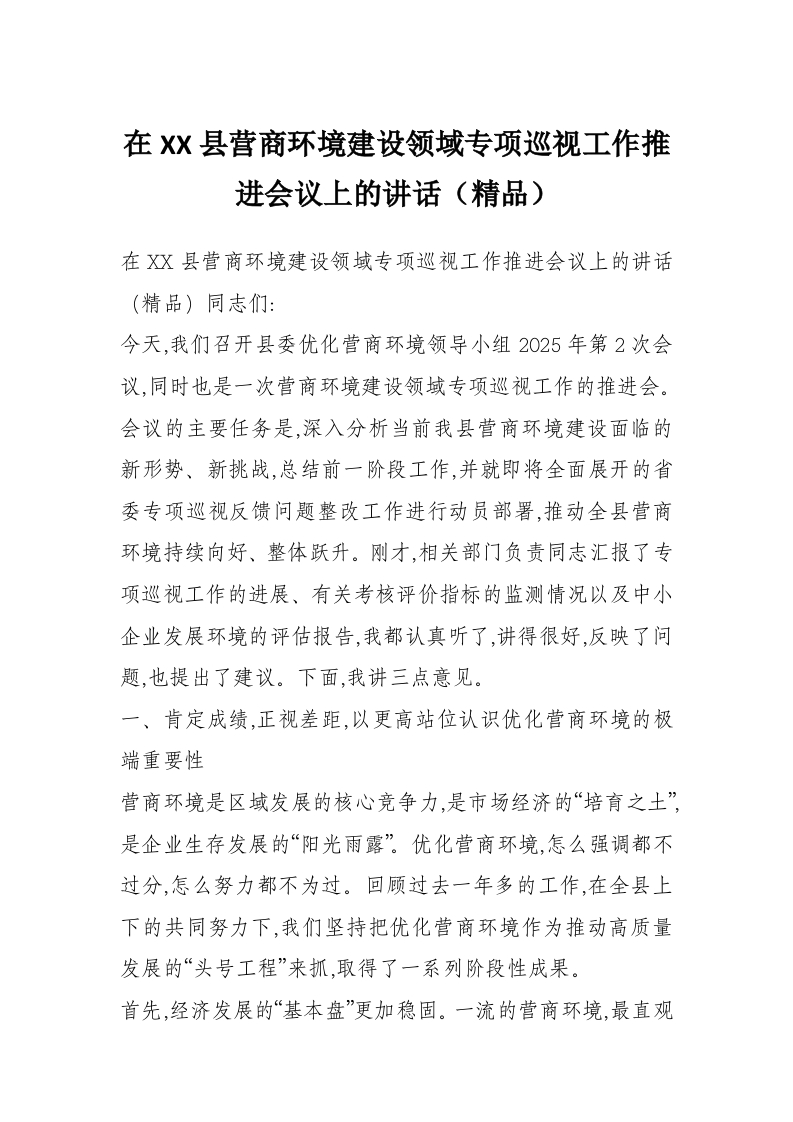 在XX县营商环境建设领域专项巡视工作推进会议上的讲话(精品)