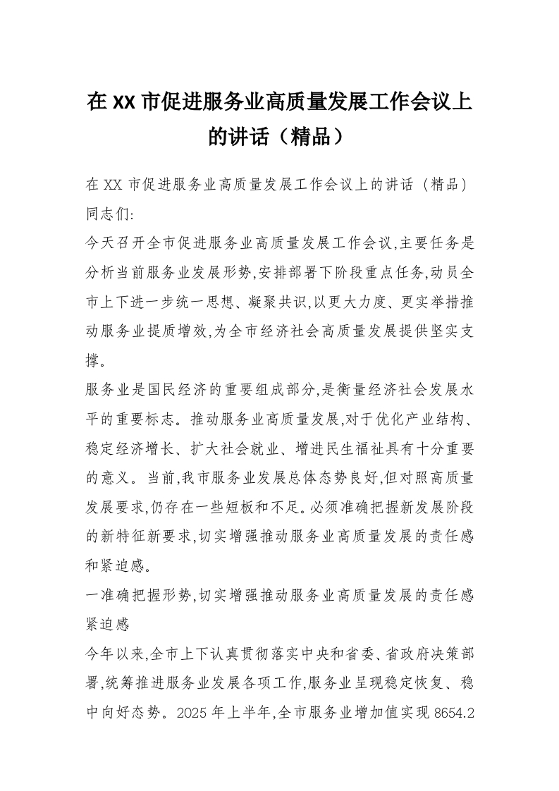 在XX市促进服务业高质量发展工作会议上的讲话(精品)