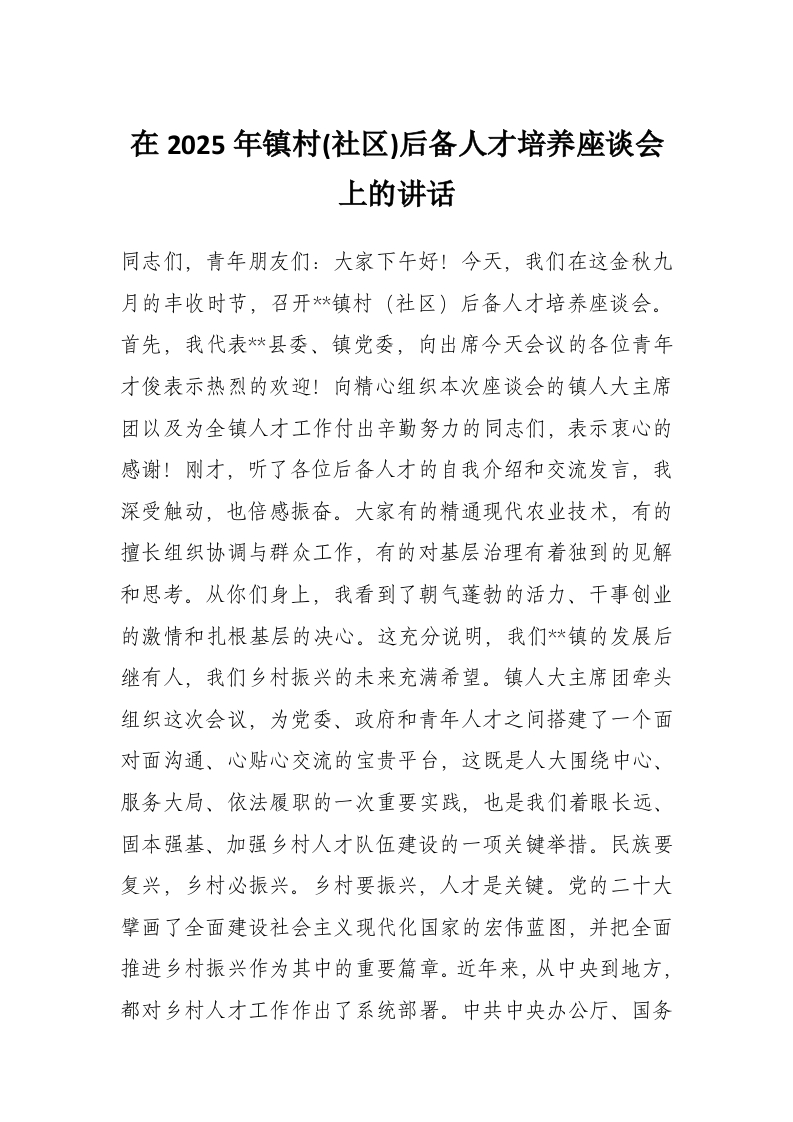 在2025年镇村(社区)后备人才培养座谈会上的讲话