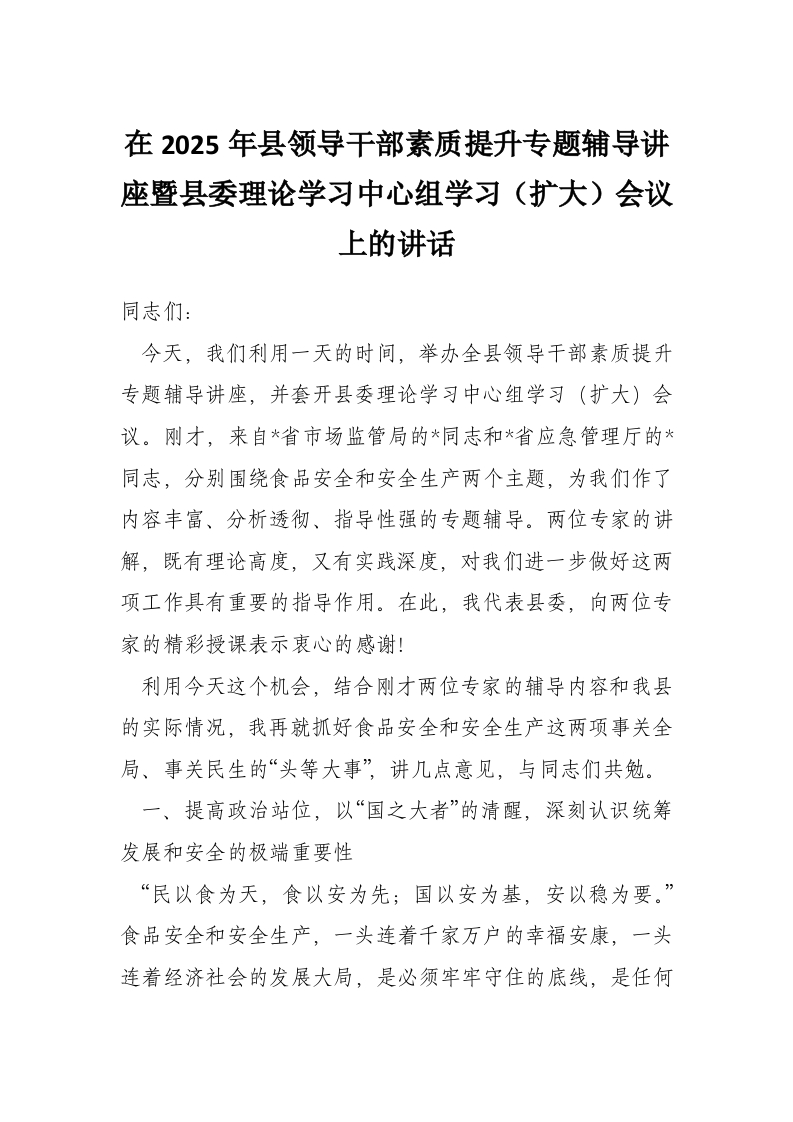 在2025年县领导干部素质提升专题辅导讲座暨县委理论学习中心组学习(扩大)会议上的讲话