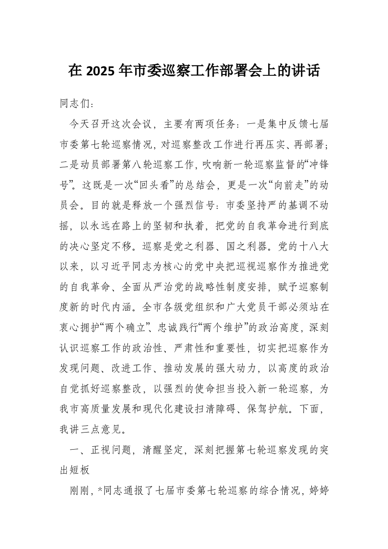 首页材料汇编在2025年市委巡察工作部署会上的讲话