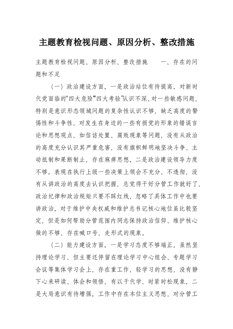 首页写作素材主题教育检视问题、原因分析、整改措施