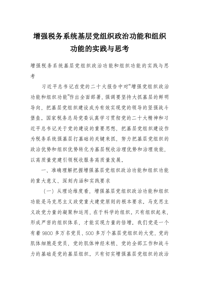 增强税务系统基层党组织政治功能和组织功能的实践与思考