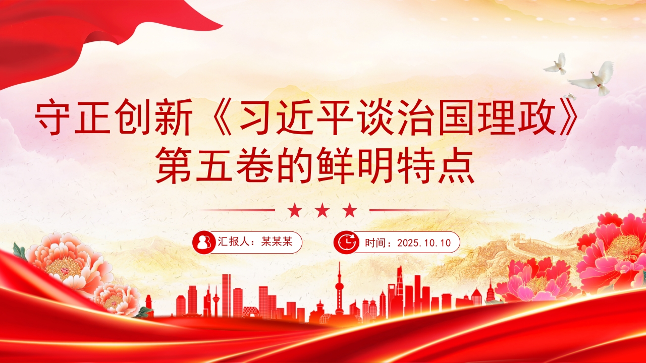 首页PPT模板守正创新PPT《***谈治国理政》第五卷的鲜明特点党课课件
