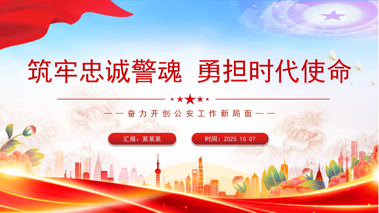红色精美筑牢忠诚警魂勇担时代使命PPT公安警察党课下载