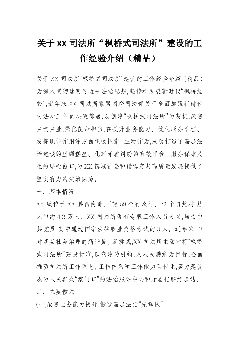 关于XX司法所“枫桥式司法所”建设的工作经验介绍(精品)