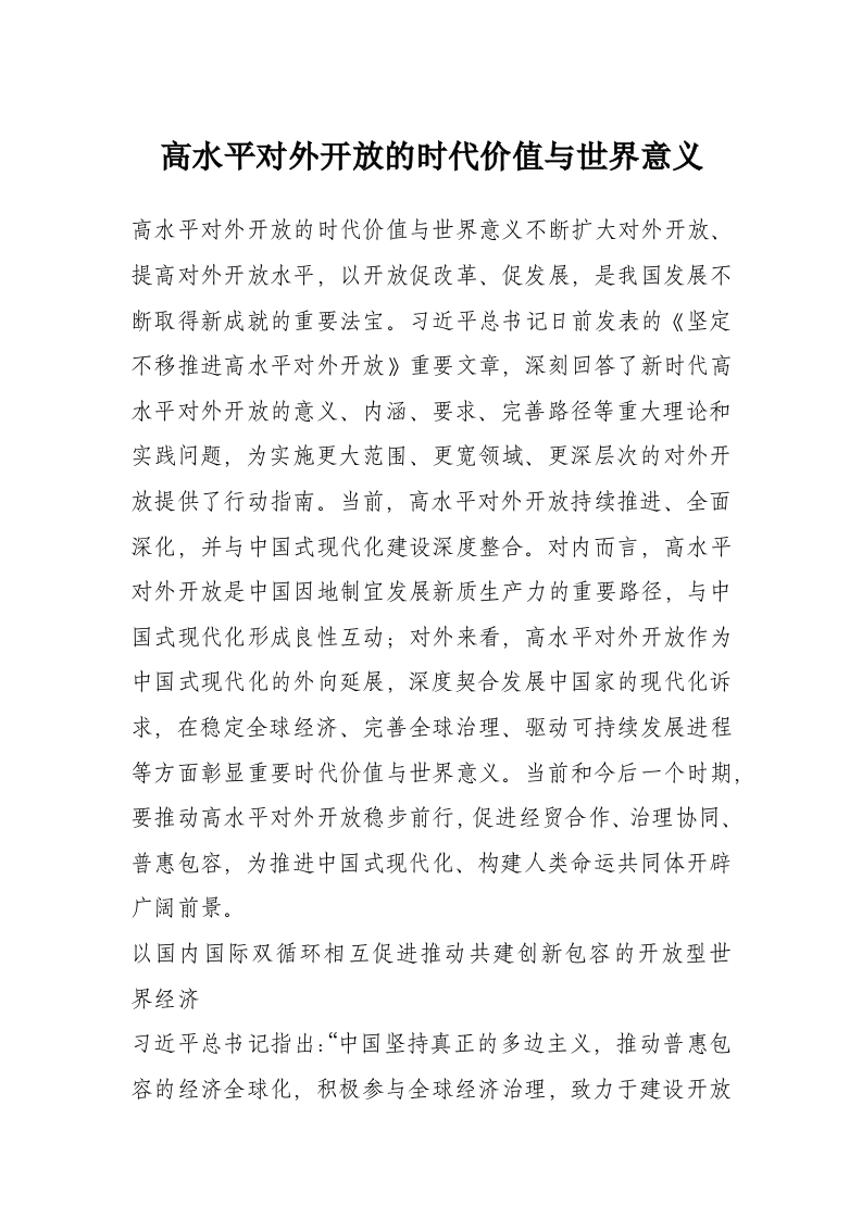 首页讲课讲稿高水平对外开放的时代价值与世界意义