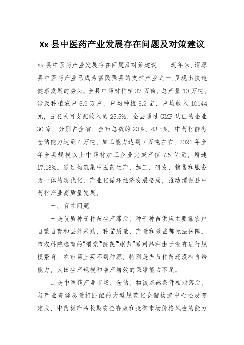 首页讲课讲稿Xx县中医药产业发展存在问题及对策建议