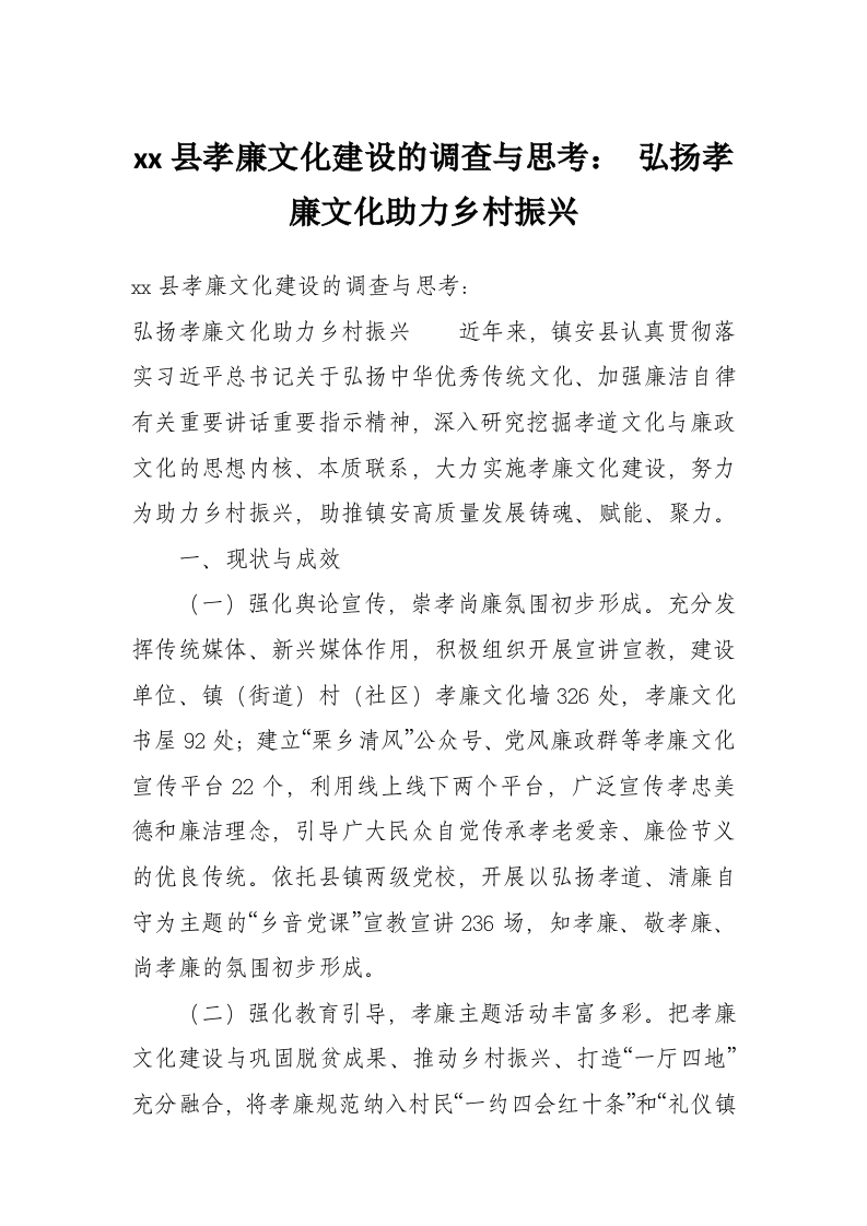 xx县孝廉文化建设的调查与思考: 弘扬孝廉文化助力乡村振兴