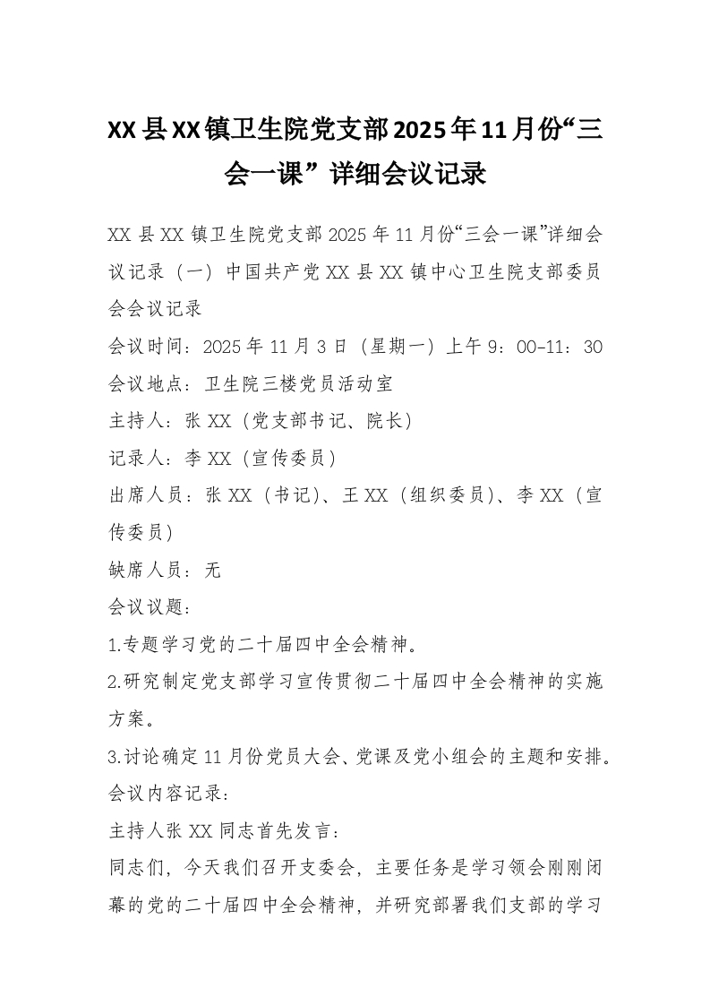 首页写作素材XX县XX镇卫生院党支部2025年11月份“三会一课”详细会议记录