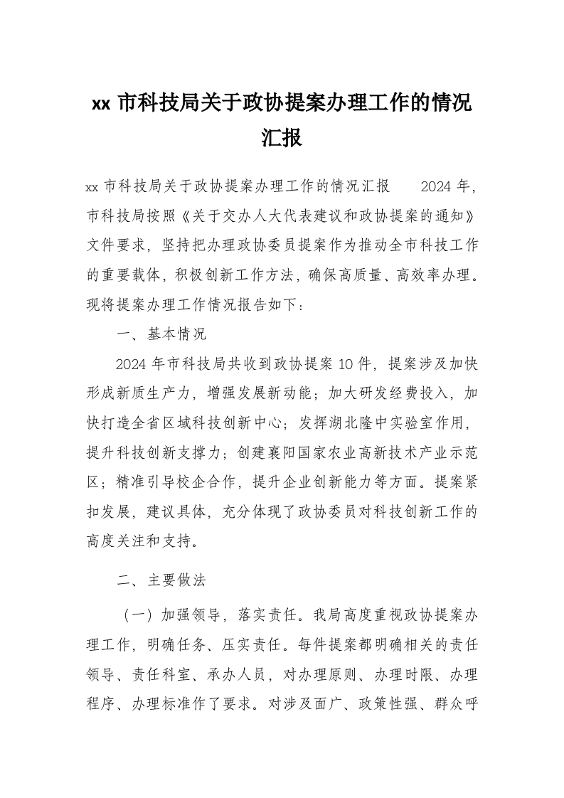 首页写作素材xx市科技局关于政协提案办理工作的情况汇报