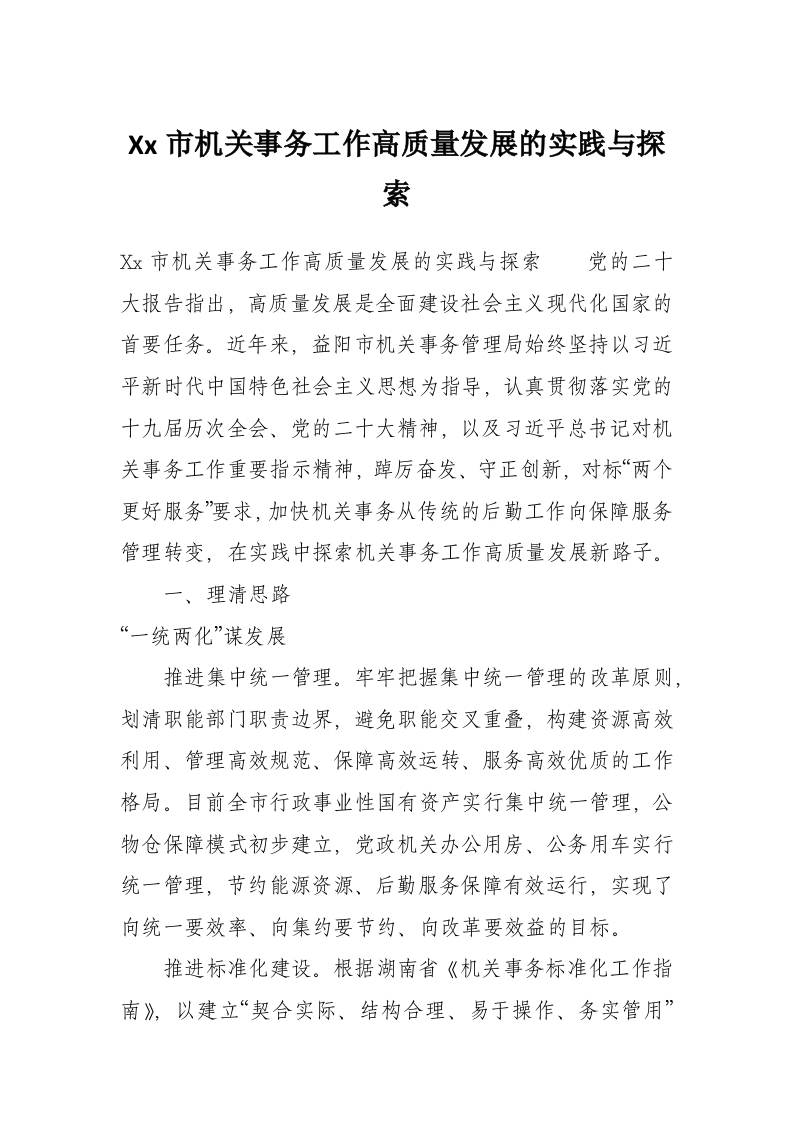 首页写作素材Xx市机关事务工作高质量发展的实践与探索