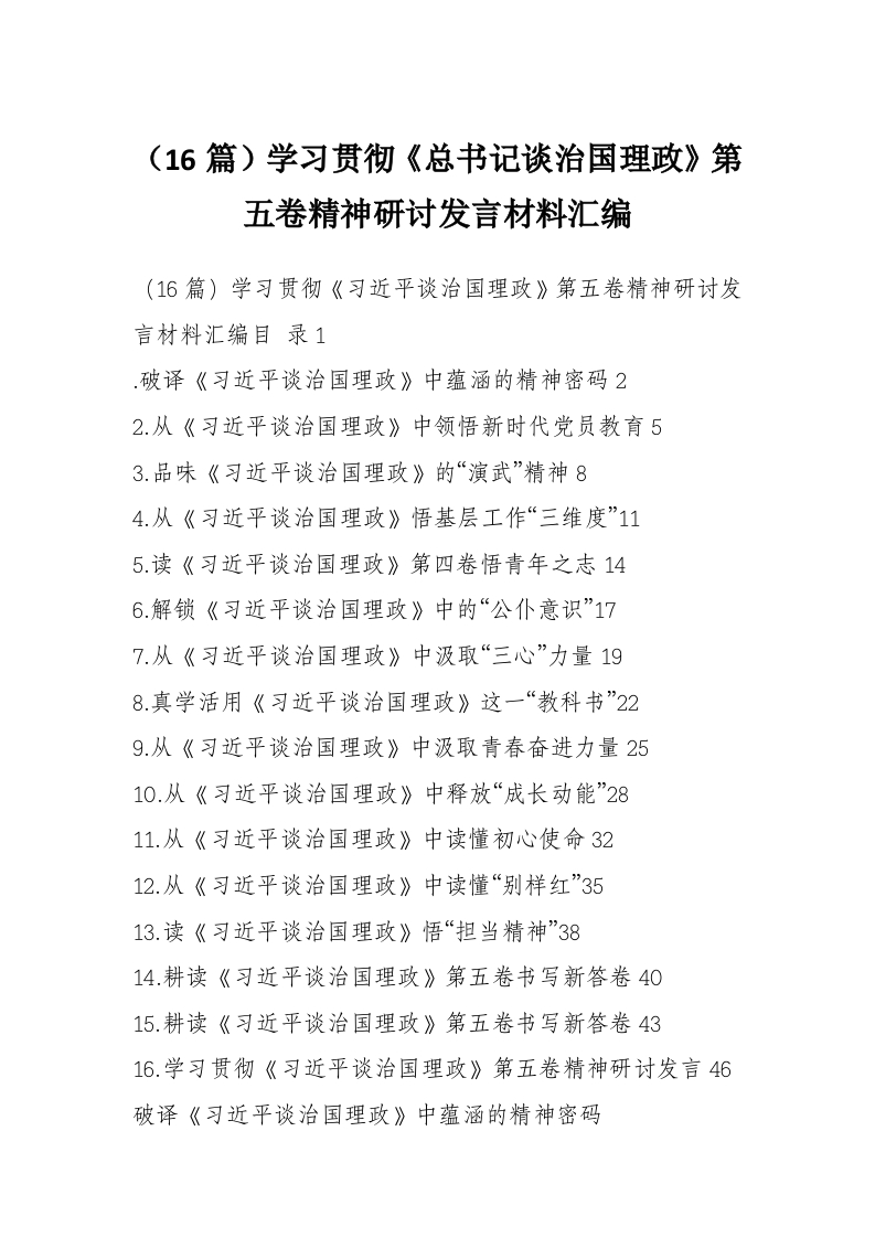 (16篇)学习贯彻《总书记谈治国理政》第五卷精神研讨发言材料汇编