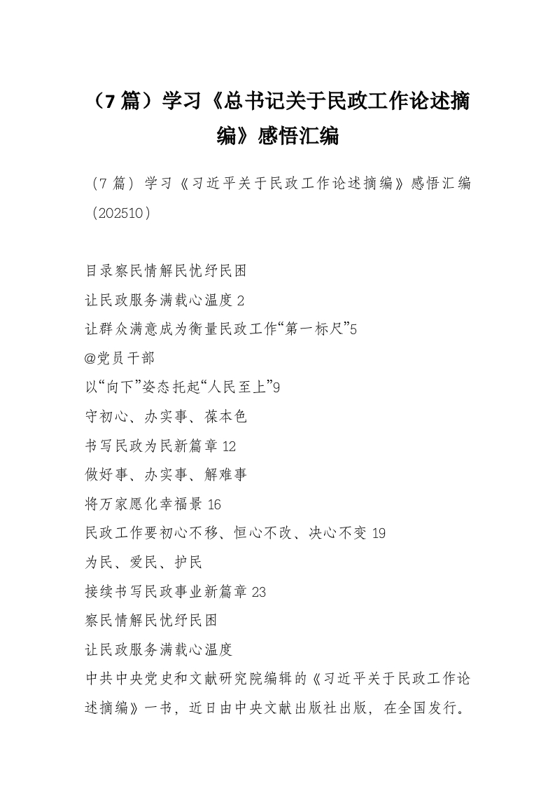 (7篇)学习《总书记关于民政工作论述摘编》感悟汇编