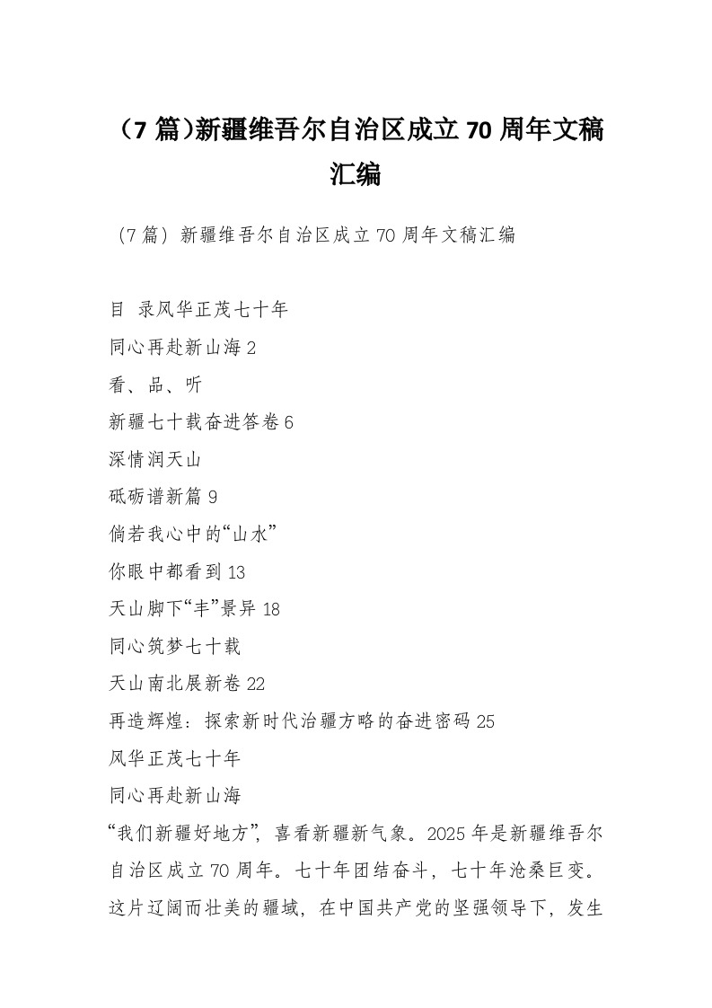 (7篇)新疆维吾尔自治区成立70周年文稿汇编