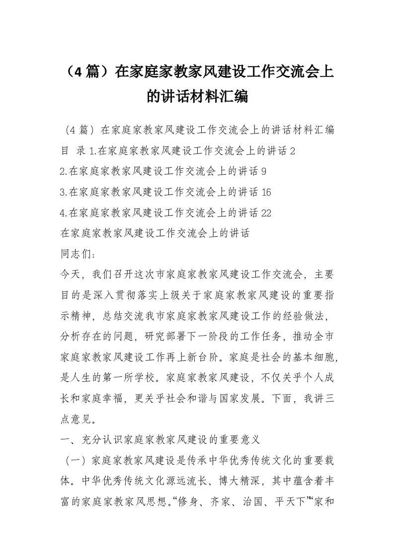 (4篇)在家庭家教家风建设工作交流会上的讲话材料汇编