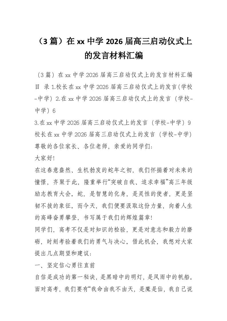 (3篇)在xx中学2026届高三启动仪式上的发言材料汇编