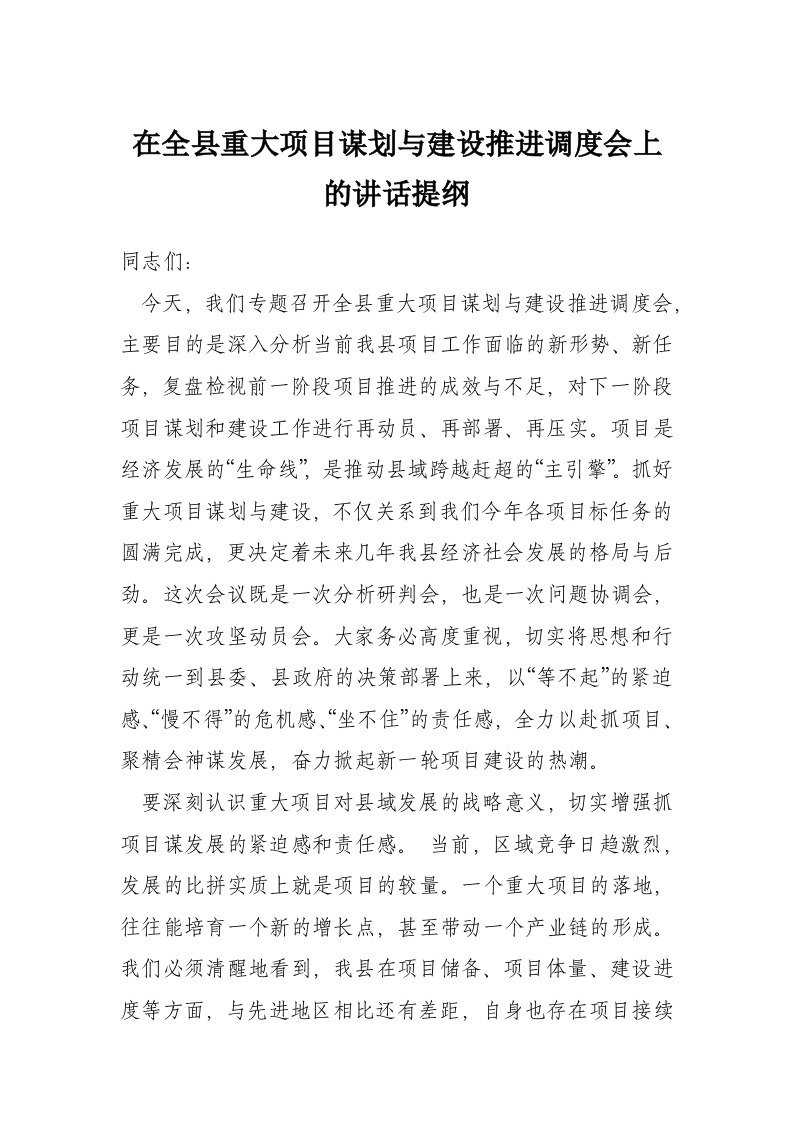 在全县重大项目谋划与建设推进调度会上的讲话提纲
