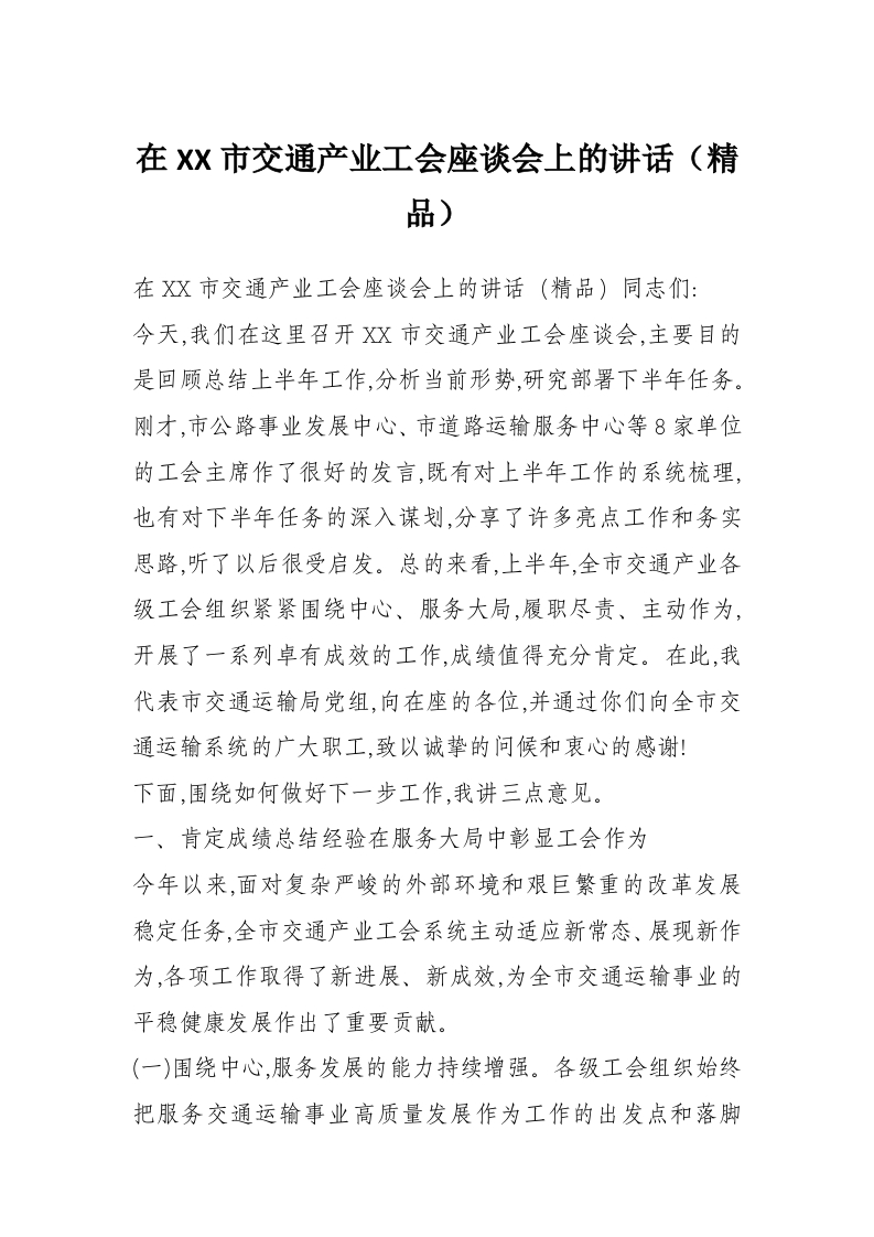 首页精选范文在XX市交通产业工会座谈会上的讲话(精品)