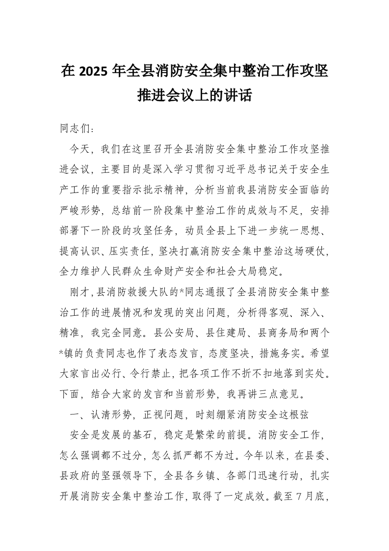 在2025年全县消防安全集中整治工作攻坚推进会议上的讲话