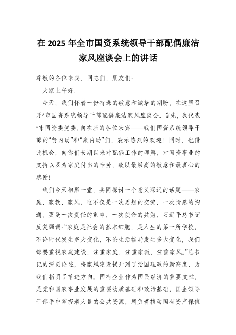在2025年全市国资系统领导干部配偶廉洁家风座谈会上的讲话