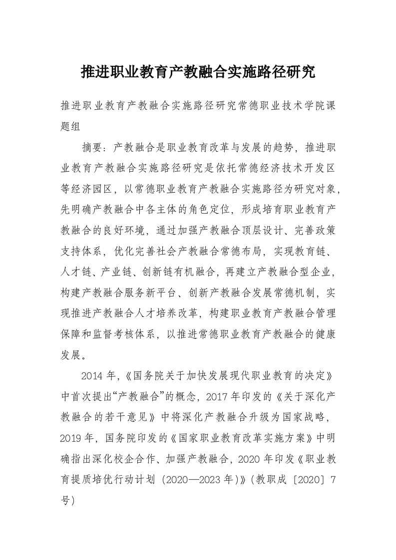 首页讲课讲稿推进职业教育产教融合实施路径研究