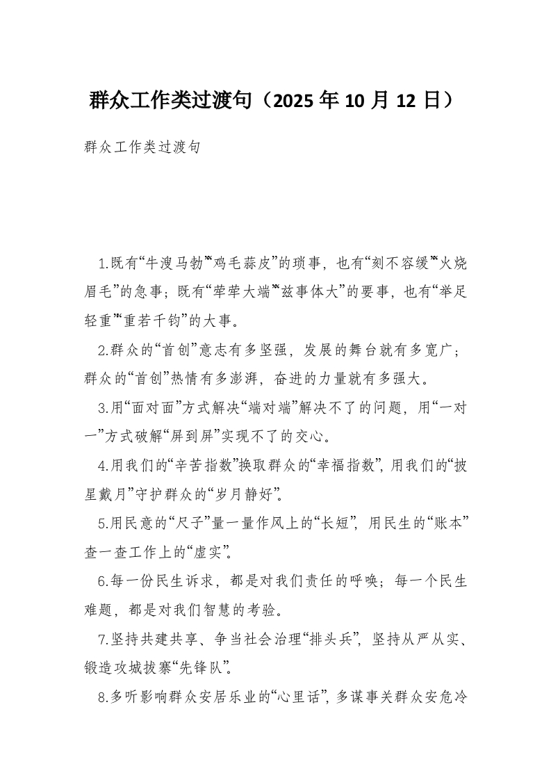 首页每日金句群众工作类过渡句(2025年10月12日)