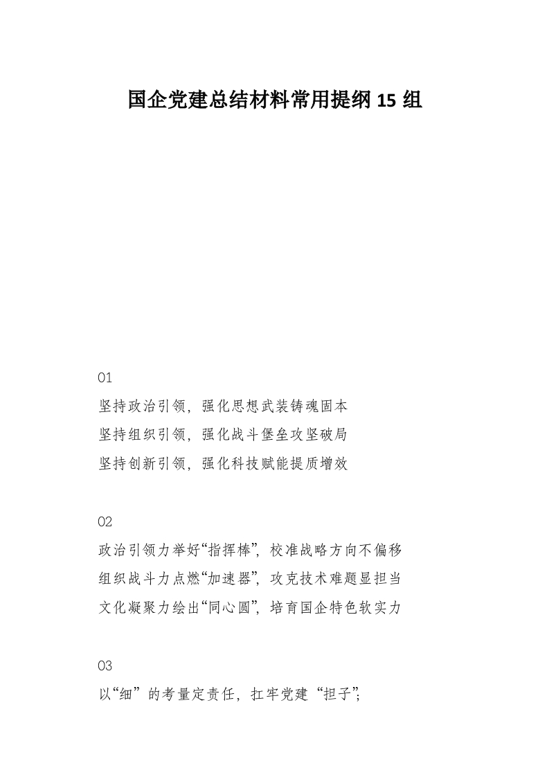 首页讲课讲稿国企党建总结材料常用提纲15组