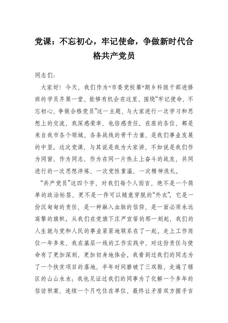 首页讲课讲稿党课:不忘初心,牢记使命,争做新时代合格***员