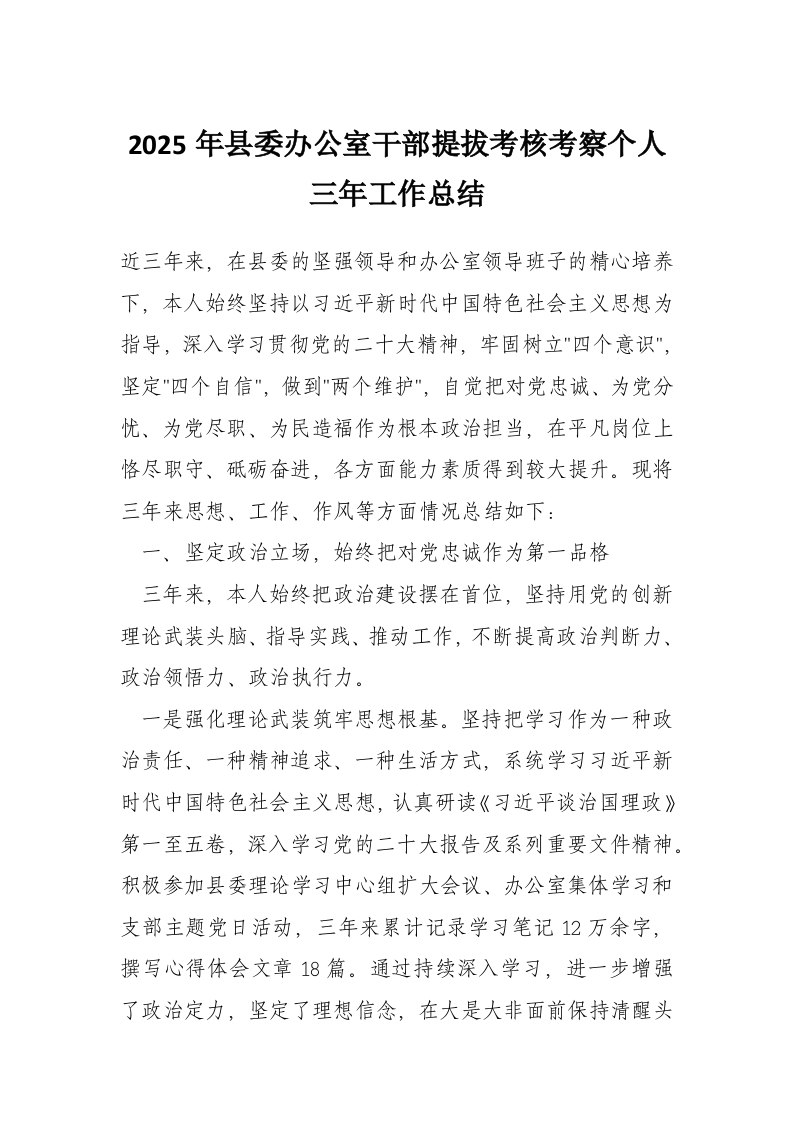 2025年县委办公室干部提拔考核考察个人三年工作总结