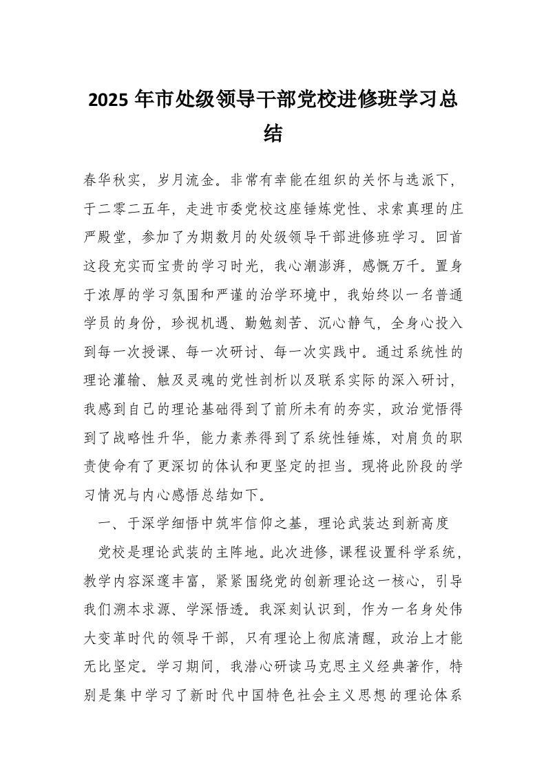 首页讲课讲稿2025年市处级领导干部党校进修班学习总结