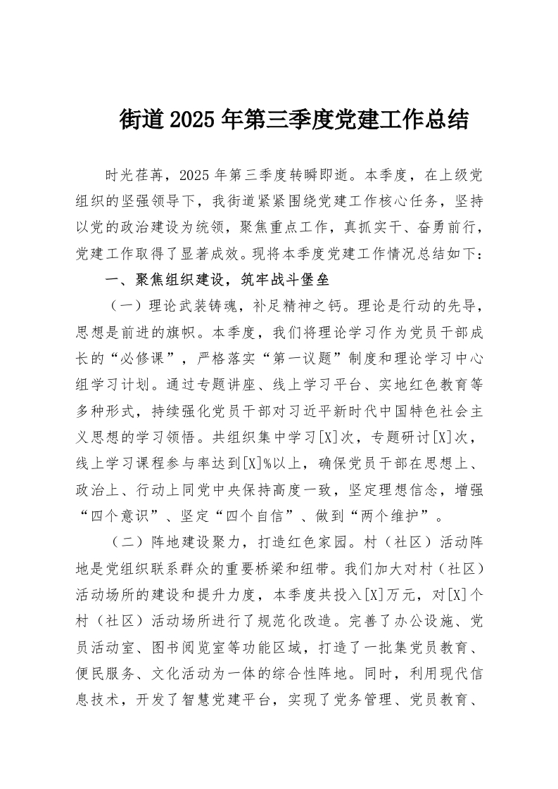 首页工作文档街道2025年第三季度党建工作总结