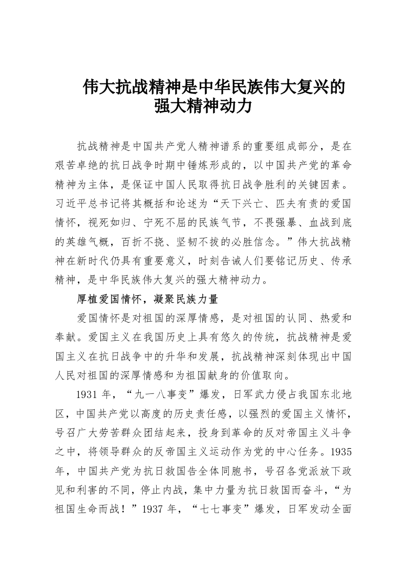 首页工作文档伟大抗战精神是中华民族伟大复兴的强大精神动力