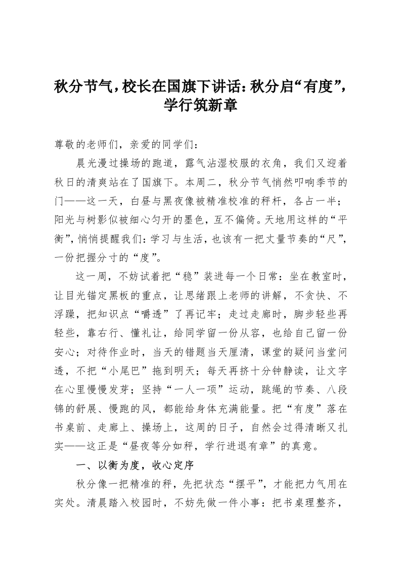 秋分节气,校长在国旗下讲话:秋分启“有度”,学行筑新章