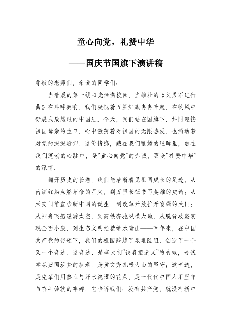 国庆节国旗下演讲稿:童心向党,礼赞中华