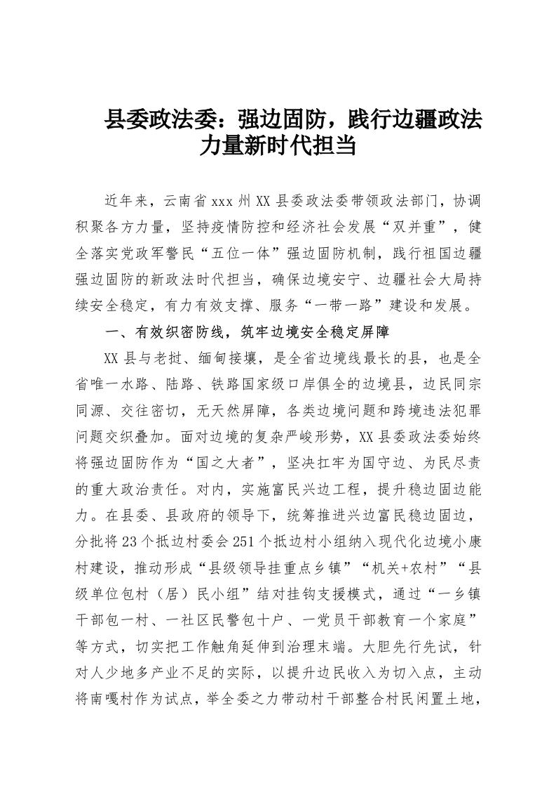县委政法委:强边固防,践行边疆政法力量新时代担当
